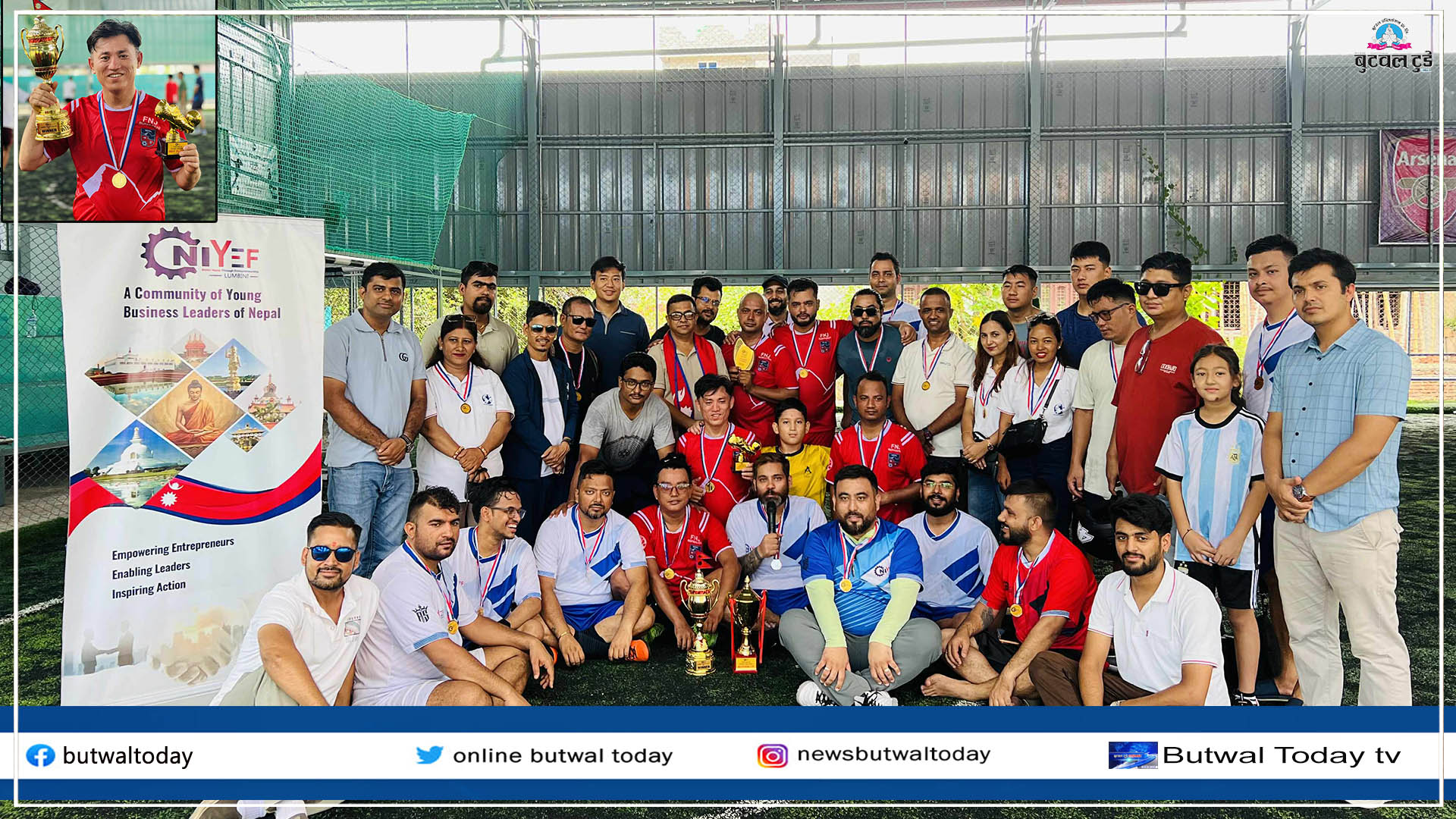 एक समारोहका बिच अखिल नेपाल फुटबल संघका केन्द्रीय उपाध्यक्ष दिर्घ बहादुर केसी, नगर खेलकुद विकास समितिका संयोजक बोनिन पिया, संघका अध्यक्ष लोक पुन, संघका उपाध्यक्ष मुकेश कुवर, कोषाध्यक्ष गोपिराम पुन, एन्फा एकेडेमी बुटवलका डाईरेक्टर बुद्धि गुरुङले विजेता, उपविजेता टिमलाई पुरस्कार वितरण गरेका छन । १९ दिनसम्म चलेको प्रतियोगितामा ९ टिमले भाग लिएका थिए ।