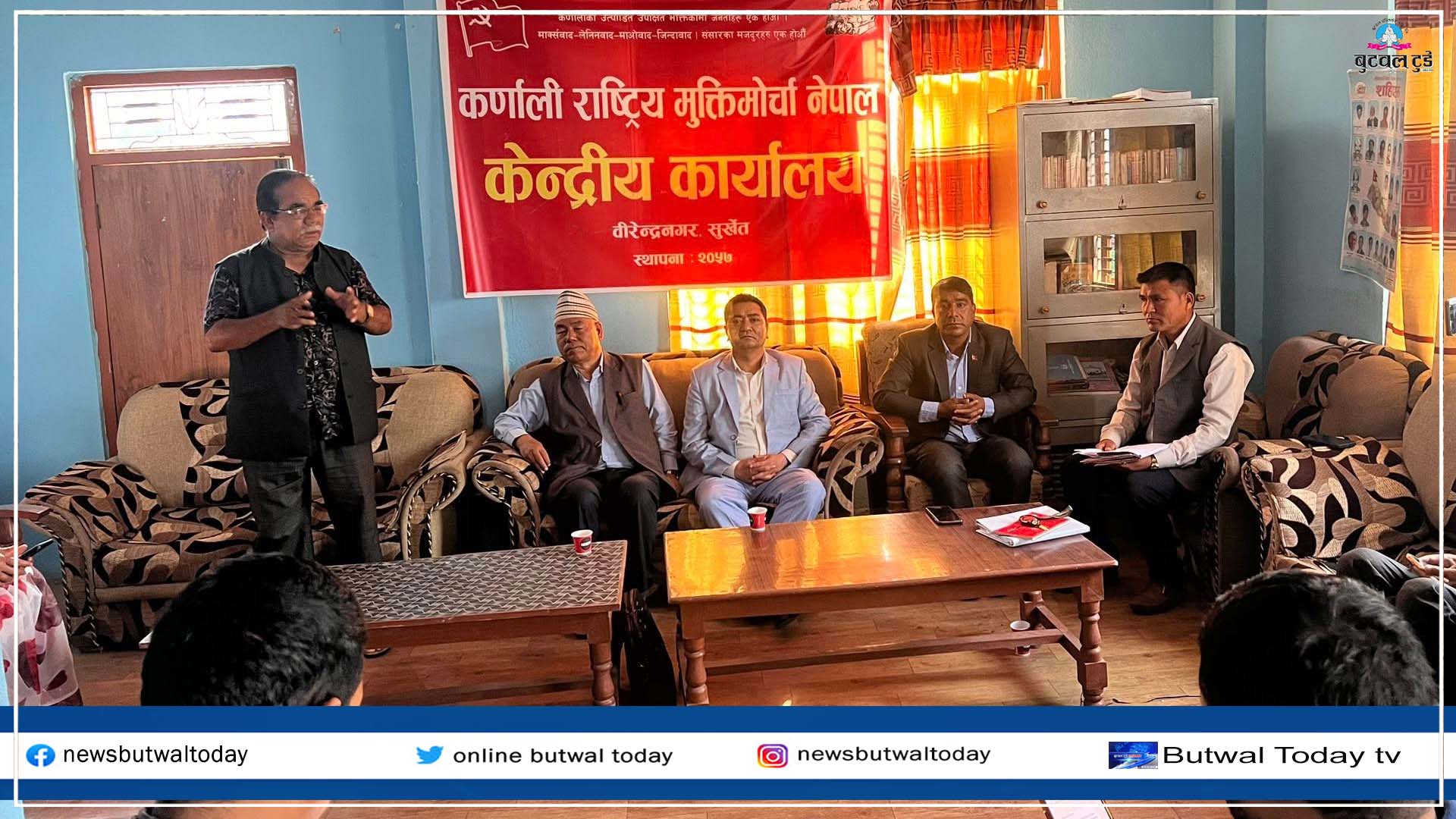 माओवादी केन्द्रले जनतामा फर्किने संकल्प गरेपछि पुसमा बसेको केन्द्रीय बैठकले जातीय र क्षेत्रीय मोर्चा ब्युँताउने निर्णय गरेको थियो । सोही अनुसार कर्णाली राष्ट्रिय मुक्ति मोर्चालाई पनि पुनर्गठित गरिएको हो । मोर्चाको केन्द्रीय कार्यालय वीरेन्द्रनगरमा र विशेष कार्यालय जुम्लाको सिञ्जामा राखिने छ । नेकपा माओवादीका कर्णाली प्रदेश अध्यक्ष विमला केसीले कर्णालीका समस्या समाधानका लागि अघि बढ्न मोर्चाको गठन गरिएको बताइन् । ‘कर्णाली पिछडीएको र उत्पिडित क्षेत्र हो त्यसकारण हामी यहीबाट कार्यक्रमको घोषणा गरेका हौ’ केसीले भनिन्, ‘कर्णालीका समस्या समाधानका लागि उपाए सुल्झाउनुका साथै यहाँको विकास र समृद्धिका लागि मोर्चा अघि बढ्छ ।’