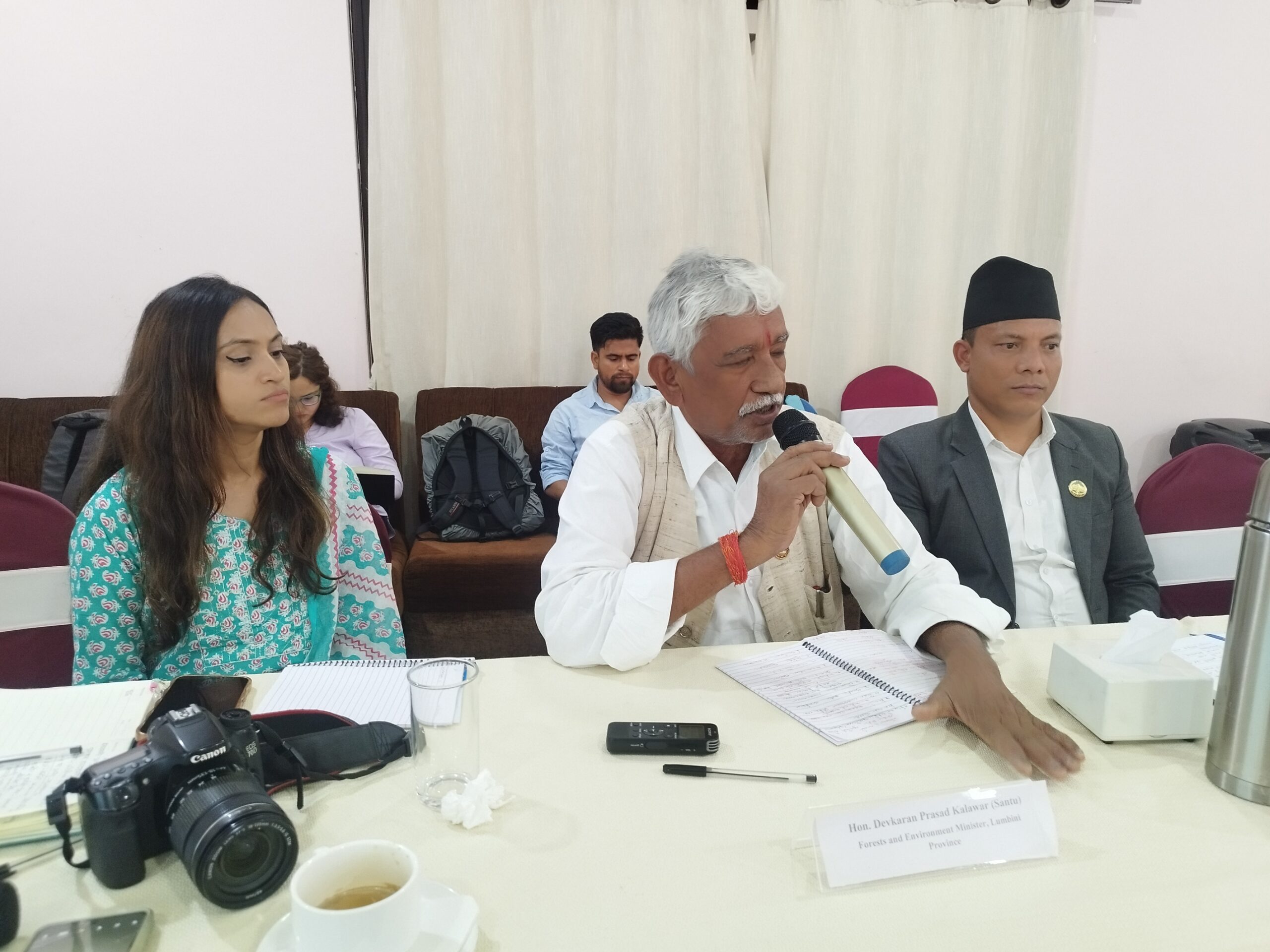 कार्यक्रममा लुम्बिनी प्रदेश वन तथा वातावरण मन्त्री देवकरण प्रसाद कलवारले जलबायु परिवर्तनका कारण देशमा धेरै असर भएको बताए । “पानीका मुहान, खोला नाला सुकेका छन् । सिचाइका लागि पोखरीको व्यवस्थापन गर्नुपर्छ । सिमसार क्षेत्र संरक्षण गर्नुपर्छ”– उनले भने–“पानीको संरक्षणले मात्र हरित ब्यवस्थापन हुने गर्छ । प्रत्येक खोलामा तटबन्ध गर्ने र पानीलाई प्राथमिकता राखेर काम गर्नुपर्छ ।”