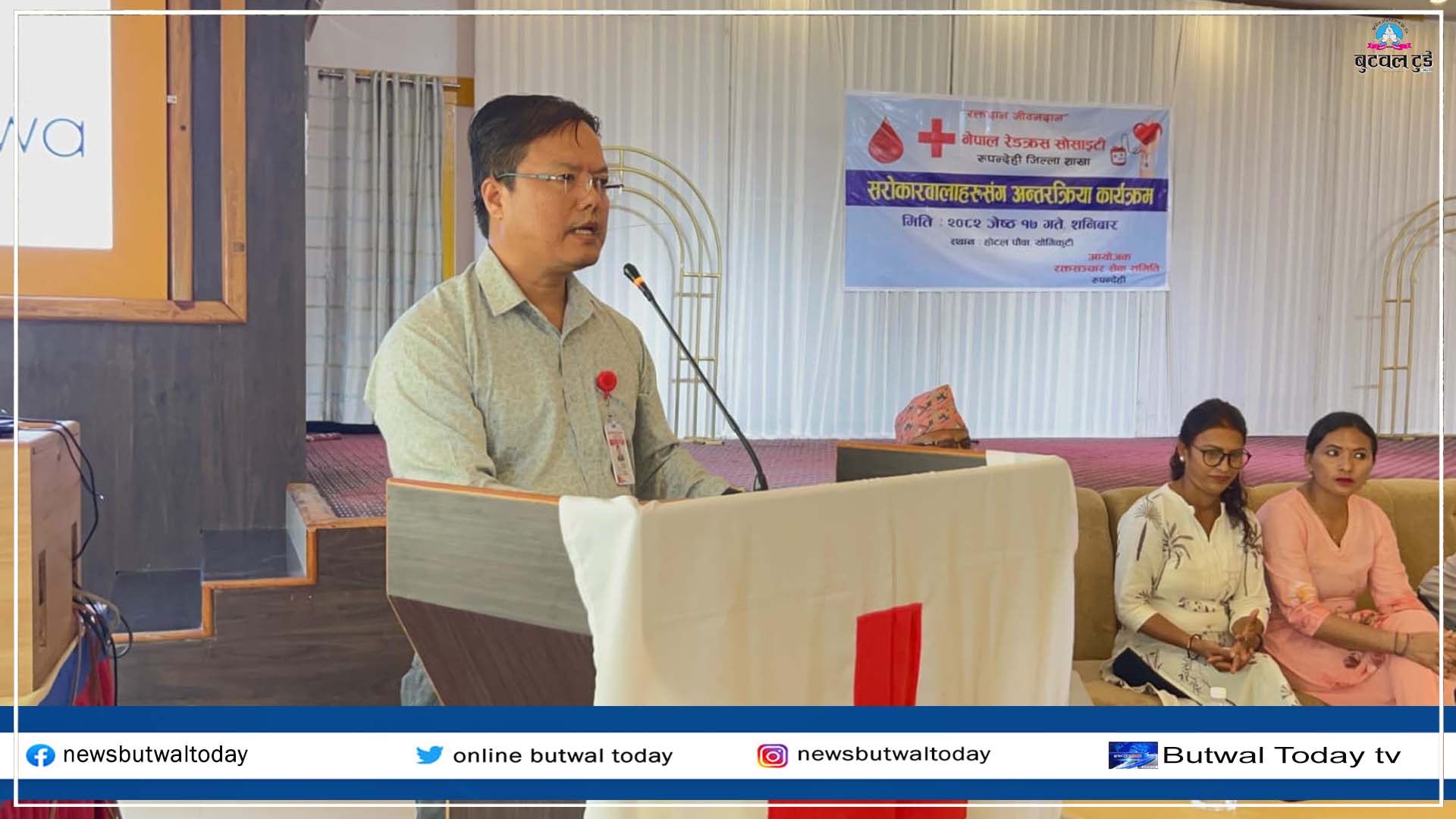 नेपाल रेडक्रस सोसाइटी जिल्ला शाखा रुपन्देहीको अन्तर्गत रहेको रक्तसञ्चार सेवा समिति बुटवलको आयोजनामा सरोकारवालाहरू सँग अन्तरक्रिया कार्यक्रम गरिएको छ । रेडक्रस सोसाइटीले गर्दै आएको सामाजिक सेवा भावको बारेमा जानकारी दिँदै आगामी दिनमा सेवा प्रवाहमा सरोकारवालाहरुसंगको सुझावलाई समेट्ने उद्देश्यका साथ कार्यक्रम गरिएको हो ।