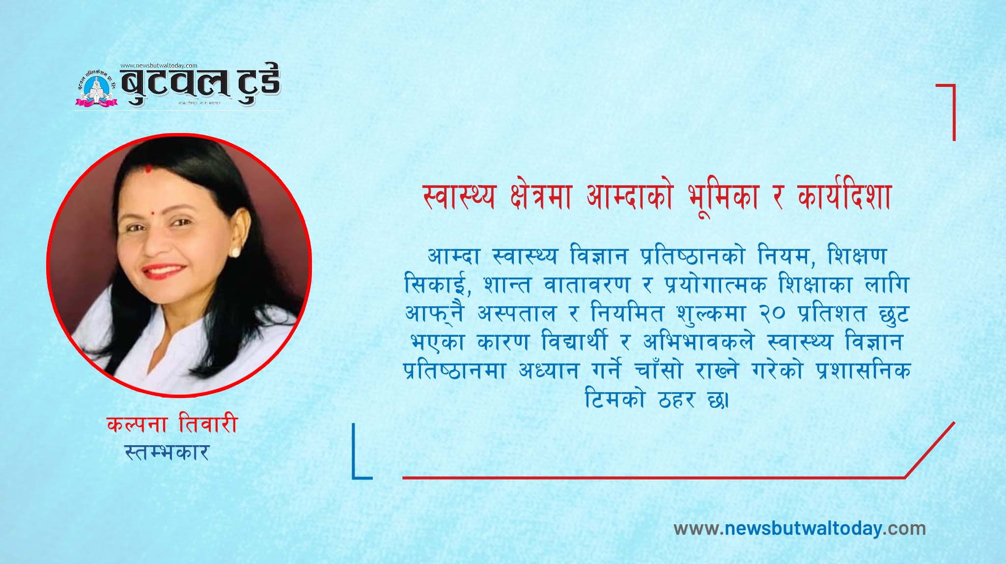 >> एमाले महाधिवेशन र अपेक्षा  >> चुनाव हारेका नै काङ्ग्रेसका ‘प्रस्तावित उम्मेदवार’ >> प्रसिद्ध कृषि सहकारीको नवौँ वार्षिक साधारण सम्पन्न  >> व्यावसायिक कुखुरा पालेर आत्मनिर्भर बन्दै बसन्ता र अनिता >> रक्षात्मक राजनीतिबाट आक्रामकतर्फ एमाले, सल्लाघारीबाट दियो यस्तो सन्देश >> सुदूरपश्चिमलाई पराजित गर्दै लुम्बिनी लायन्स बन्यो एनपीएल दोस्रो सिजनको च्याम्पियन >> एमाले महाधिवेशनमा लिङ्देनले भने : अब नयाँ समझदारी कायम गर्नुपर्छ >> लगातार दोस्रो सिजन एनपीएल ट्रफी जित्ने पहिलो नेपाली खेलाडी बने शेर मल्ल >> नाम सिफारिसमा सभापति मुकुल आचार्यले हस्ताक्षर दुरुपयोगको आरोप  >> चुनढुङ्गा बोक्ने टिप्परले जनजीवन नराम्ररी प्रभावित, विद्यार्थीसहित निर्णायक आन्दोलनमा उत्रिए स्थानीय >> उद्घाटन सत्रमा ओली भन्छन् – ढुक्कले भन्छु, एमाले अजम्बरी छ >> एमाले महाधिवेशन : सल्लाघारीमा नेता- कार्यकर्ताको जमघट >> कतारमा निःशुल्क स्वास्थ्य परीक्षण कार्यक्रम सम्पन्न >> आगलागीबाट एक महिनामै ८ जनाको मृत्यु, ५५ घाइते >> एमाले महाधिवेशनमा कांग्रेस सभापति देउवा सहभागी नहुने >> एनपीएल फाइनल खेल्न लागेका लुम्बिनी र सुदूरपश्चिमलाई प्रधानमन्त्री कार्कीको शुभकामना >> मनोनीत सूचीमा सहमति विपरीत एकलौटी निर्णय गरेको पोखरेलको आरोप >> श्रीलंकाविरुद्ध नेपाल पहिले ब्याटिङमा >> सुजन कडरियादेखि गणेश तिम्सिनासम्म एमाले महाधिवेशन प्रतिनिधिमा मनोनीत >> सुनिता डंगोल एमाले महाधिवेशन प्रतिनिधिमा मनोनयन >> परिपक्व नेताहरूले दूरदृष्टिपूर्ण निर्णय लेऊन् : पूर्वराष्ट्रपति भण्डारी >> एमाले महाधिवेशनमा मनोनीत हुने प्रतिनिधिलाई ६०/४० को रेसियोमा भागवण्डा गरिने >> दाङतिर दौडिँदा…….. >> बनगाइ–मोतीपुर–कपिलधाम सडक ६ महिनामै सम्पन्न गर्ने लक्ष्य >> बुटवल हस्पिटलले गुल्मेली कलाकारलाई २५ प्रतिशत छुटमा उपचार गर्ने >> क्याम्पसको महायज्ञमा ३ करोड भन्दा बढी रकम सङ्कलन >> स्टार फुटबलर मेसी भारत आइपुगे >> पश्चिम नेपाल यातायात बहुउद्देश्यीय सहकारीको साधारण सभा सम्पन्न >> यू–१९ एसिया कप : नेपाल पहिलो खेलमा आज श्रीलंकासँग खेल्दै >> पञ्चकोश सिद्धान्तको शास्त्रीय विश्लेषण >> नेपाली कम्युनिष्ट पार्टीले सुर्खेतमा एकता सन्देश सभा आयोजना गर्दै >> कञ्चन गाउँपालिकामा सार्वजनिक सुनुवाइ २०८२ सम्पन्न >> एमाले महाधिवेशन : बम डिटेक्टर उपकरण र विशेष तालिमप्राप्त कुकुरसहित प्रहरी परिचालन >> पिपरीचापामा प्रथम महोत्सवको तयारी अन्तिम चरणमा >> एमालेको ११ औं महाधिवेशन आज, उदघाटन स्थलमा बिहानै पुगे कार्यकर्ताहरु >> पन्ध्रौँ महाधिवेशनमा जुट्न नेता–कार्यकर्तालाई सहमहामन्त्री राठौरको निर्देशन >> उम्मेदवार छनौटले काँग्रेसमा किचलो >> उपाधिका 