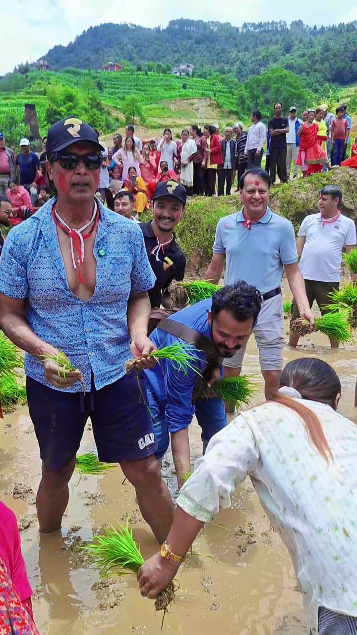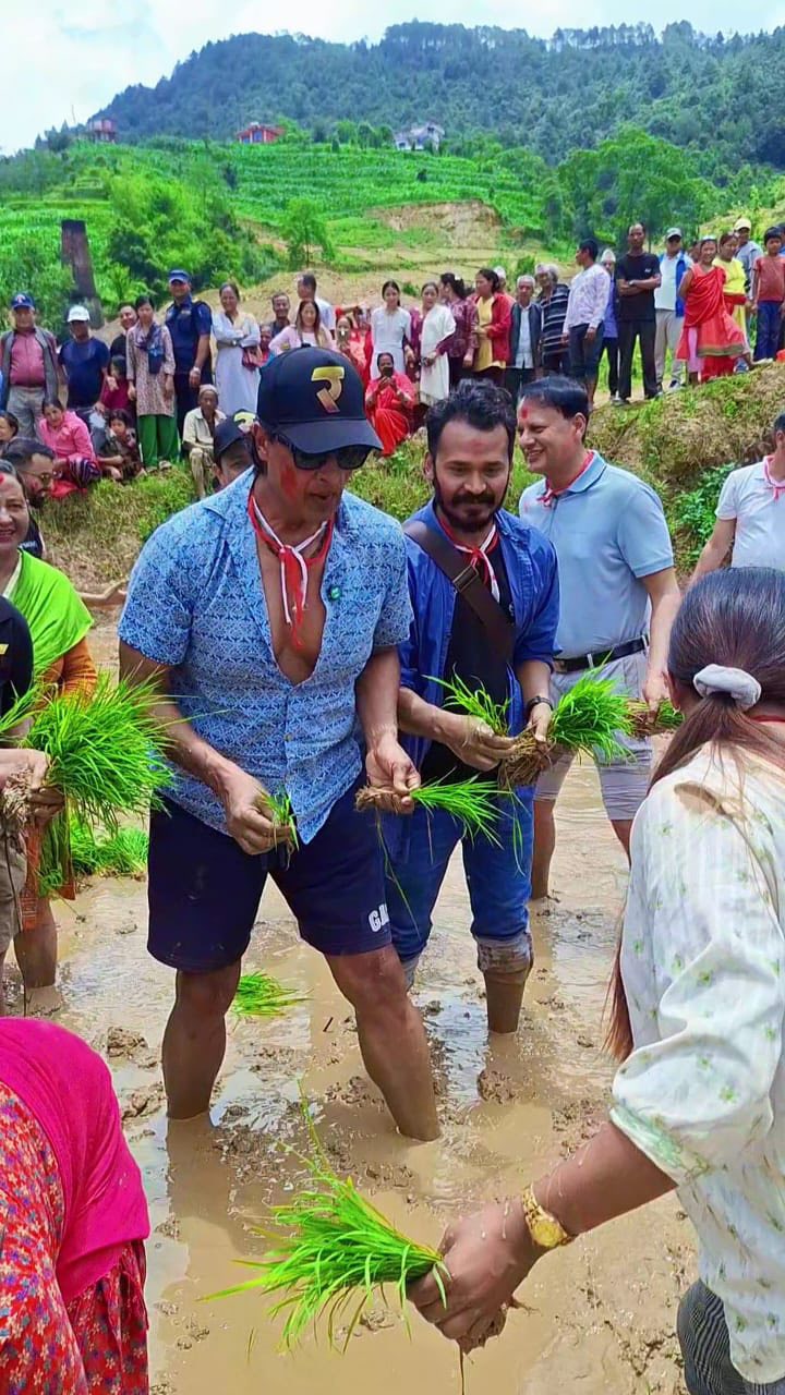 आज असार १५ धान दिवस तथा दही चिउरा खाने दिन नेपाली फिल्मका महानायक राजेश हमाल पनि खेतमा पसेर धान रोपेका छन् । उनले दही चिउरा खाने दिनमा रोपेको धानका तस्बिरसमेत सार्वजनिक गरेका छन् ।