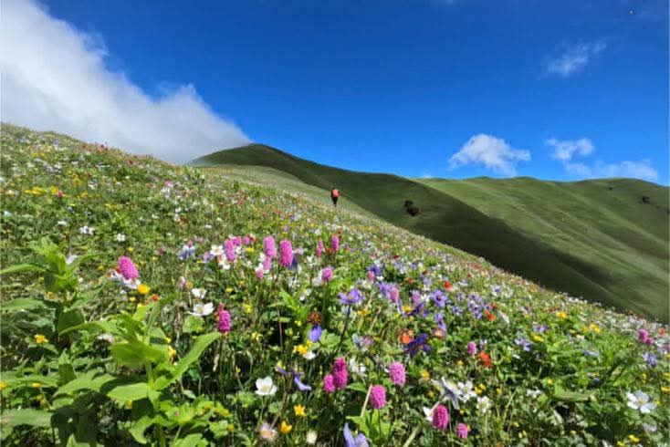 वर्खा लागेपछि लेकमा फुलेका रङ्गिचङ्गी फूलहरुले गर्दा यतिबेला रुकुमपुर्वका लेकहरु निकै सुन्दर देखिन्छन् । तस्वीर : दिलचन पुन, रुकुम पुर्व