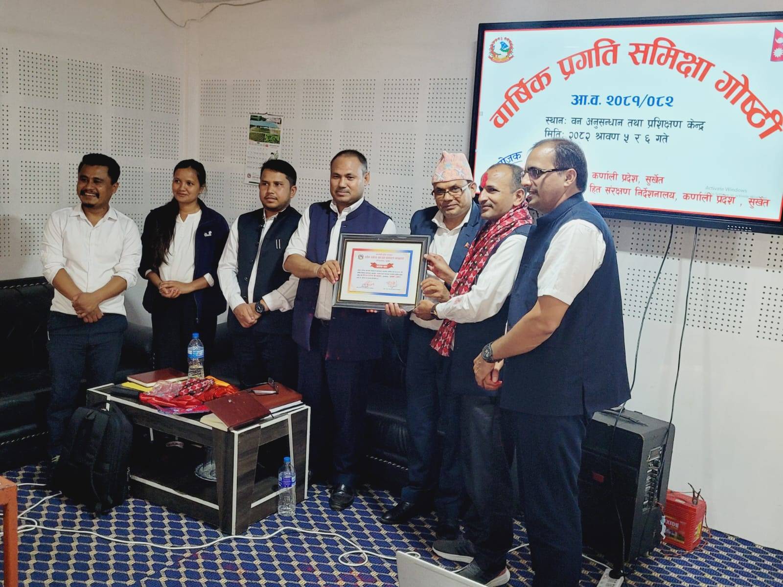 सोमबार र मंगलबार कर्णालीको राजधानी सुर्खेतमा चलेको वार्षिक समिक्षा गोष्ठीमा मन्त्रालयले उद्योग तथा उपभोक्ता हित संरक्षण कार्यालय सल्यानका प्रमुख श्याम खरेललाई प्रसंशापत्र सहित सम्मान गरेको हो ।