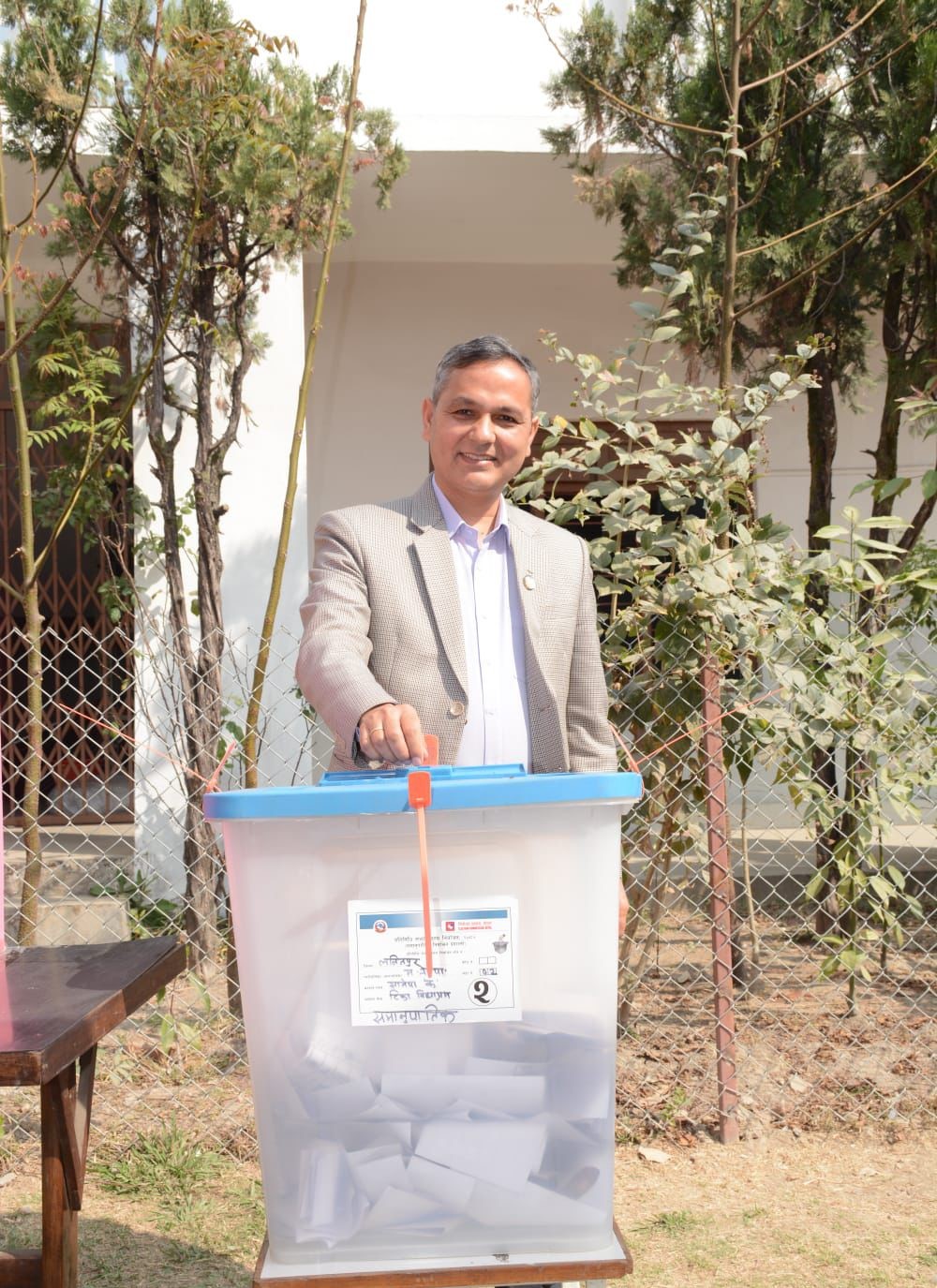 झापा । नेपाली काँग्रेसका उपसभापति विश्वप्रकाश शर्माले मेचीनगर नगरपालिका–९ स्थित कविशिरोमणि माध्यमिक विद्यालयको मतदान स्थलको ‘च’ केन्द्रमा मतदान गरेका छन् ।
