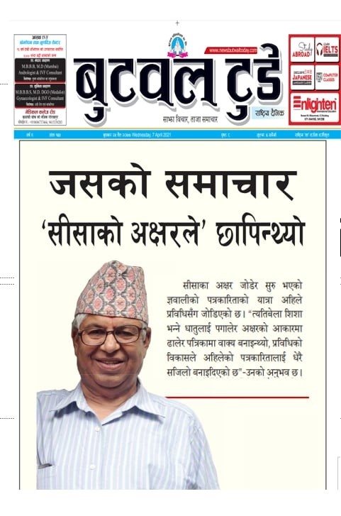 त्यतिखेर जे जसरी मैले पत्रकारिताको क क न न गरें, त्यस सम्बन्धमा पत्रकार लक्ष्मण पौडेलले बुटवल टुडे राष्ट्रिय दैनिकमा एउटा पत्र टिप्पणी लेखेका थिए । शीर्षक थियो– जसको समाचार सिसाको अक्षरले छापिन्थ्यो । मलाई लाग्छ त्यस समाचारले त्यतिखेर सिसाका अक्षरले पत्रकारिताको माध्यमबाट गरेको सूचना सञ्चारको कामको सानो झल्को दिन सक्छ ।