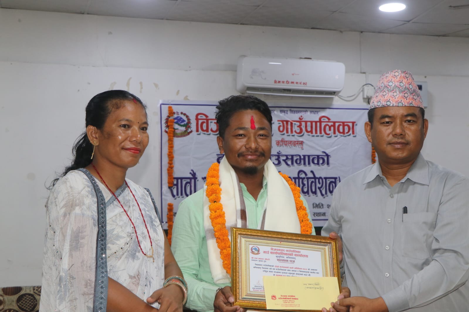 बुटवल , २६ असार । कपिलवस्तुको विजयनगर गाउँपालिकाबाट बुटवल टुडेकर्मी नगदसहित सम्मानित भएका छन् । पत्रकारिताको माध्यमबाट समग्र विकासमा उत्कृष्ट योगदान पुर्याएका पत्रकार राम अवतार चाैधरी सम्मानपत्र, खादा र नगदसहित...